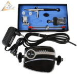 mini Airbrush Kompressor / Profi-Airbrush-Pistole “Dual-Action-Gun” / 0,2mm, 0,3mm und 0,5mm/Luftschlauch / 19 Airbrush-Farben Set