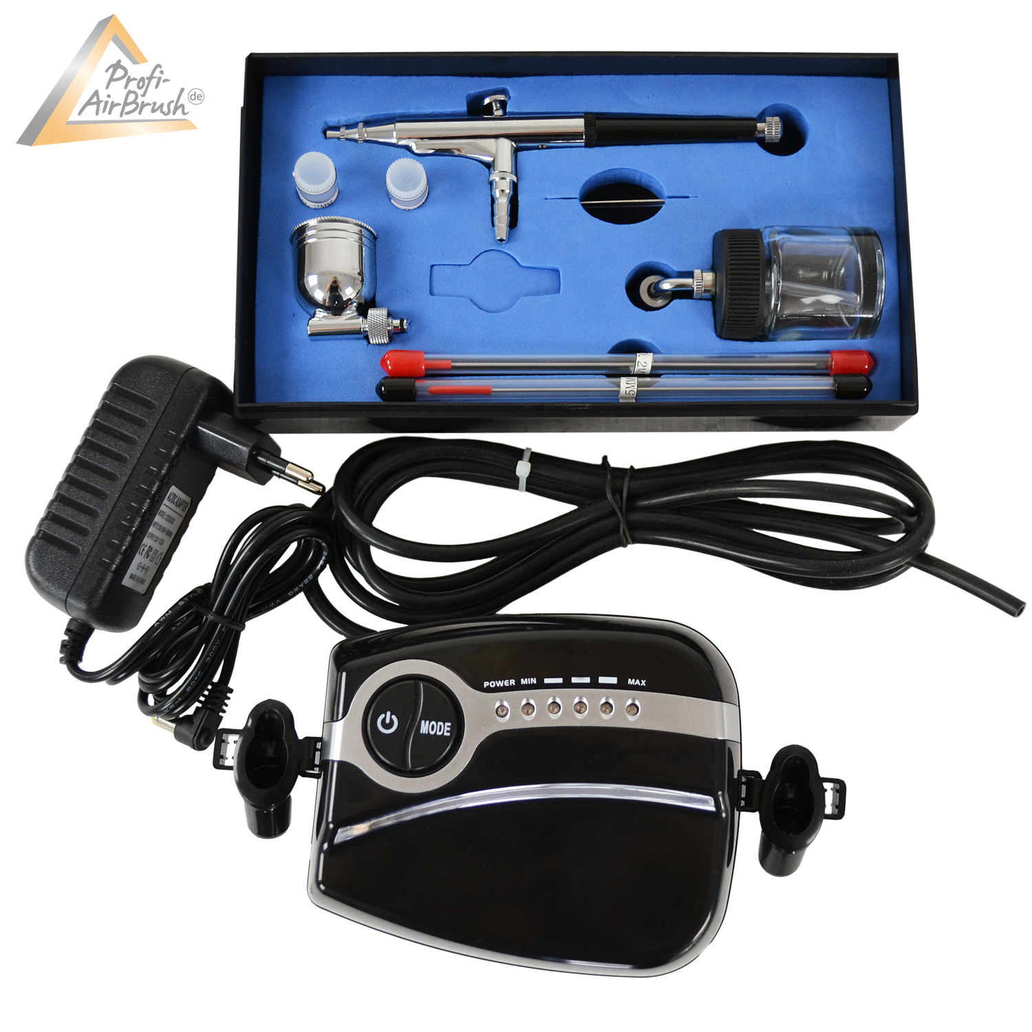 AIRBRUSH KOMPRESSOR SET: Mini Airbrush Kompressor CARRY II mit 5-POWER-STUFEN-Kompressor-Leistung (max. Druck 1,7 bar, max. Luftabgabemenge: 16 l/min, Motorleistung: 12V10W)…