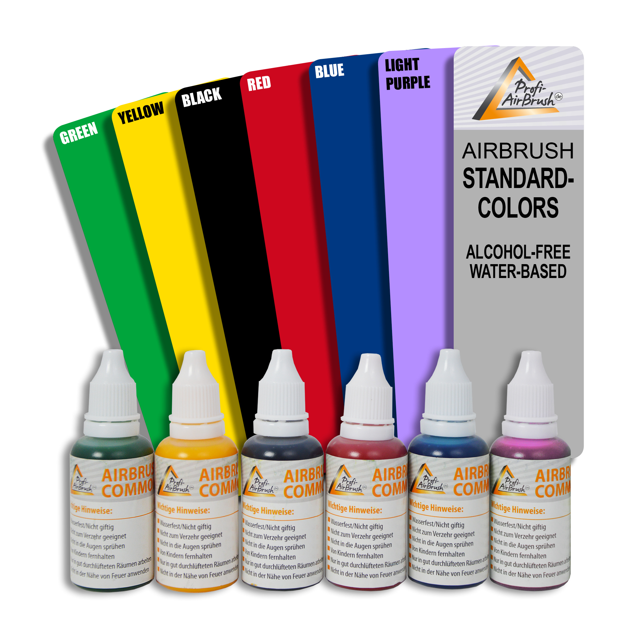 Airbrush-Universalfarben-Set für (fast) alle Anwendungen geeignet, auch für Körper-Tattoos nutzbar! 12x20ml / 6x30ml / 1x100ml