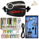 Profi-AirBrush Carry II BLACK – Color IV mit Airbrush Farben 19-er Wasserbasis Set