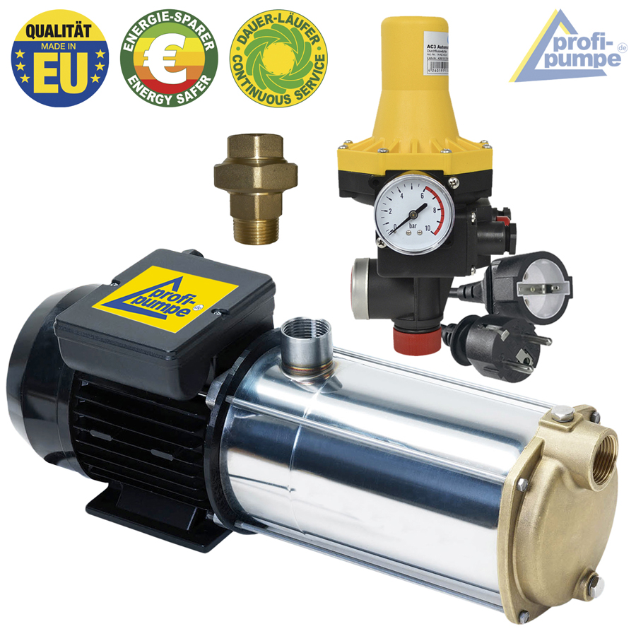 Wir empfehlen, diese Pumpe mit der intelligenten Pumpensteuerung “Durchflusswächter FLUOMAC®”Art.Nr: PS01121 . als automatisches Hauswasserwerk zu betreiben. Beim Öffnen des Wasserhahns wird die Pumpe automatisch eingeschaltet. Beim Schließen des Wasserhahns stoppt die Pumpe nach ca. 10 Sekunden selbstständig. Die elektronische Pumpensteuerung FLUOMAC®- schützt die Pumpe vor Trockenlaufschutz und erhöht die Lebensdauer. Im Vergleich mit üblichen Druckschaltern, verbrauchen Pumpen in Kombination der FLUOMAC®-Pumpensteuerung deutlich weniger Strom.