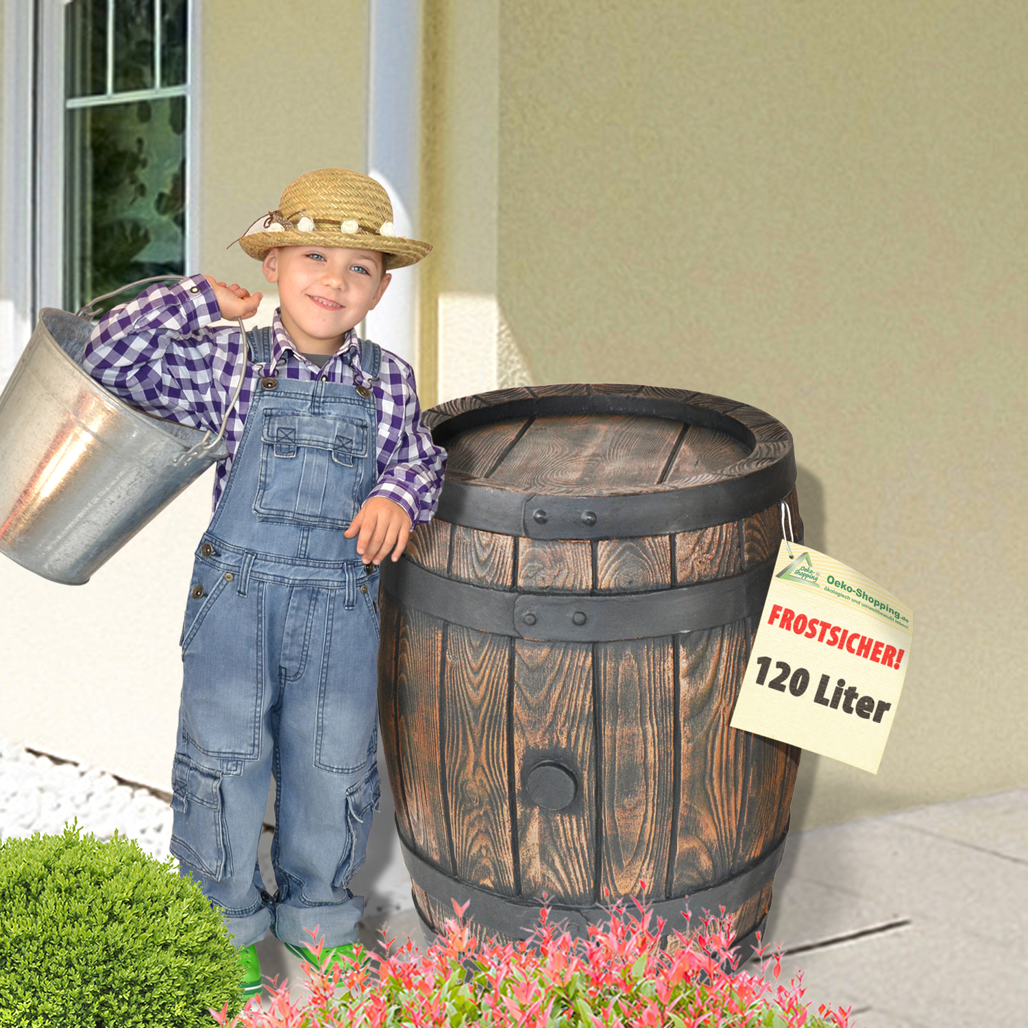 Unsere rustikalen “Eichen-Fässer” in voller Schönheit! Als Regentonne, als Garten-Theke, als Ordnungskiste für Spielzeug oder Gartenutensilien oder…oder…oder… Ein Schmuckstück für Heim und Garten – und nützlich! Diese Regentonne überzeugt nicht nur in Funktion, sondern auch im Design und den langlebigen Produkteigenschaften. Durch das einzigartige Herstellungsverfahren wurde die Holzstruktur nicht nur optisch, sondern auch fühlbar nachgebildet. Sie werden begeistert sein! Die Regentonne Eichenfass ist eine einmalige Anschaffung, die selbst nach Jahren noch dauerhaft dicht und witterungsbeständig ist.