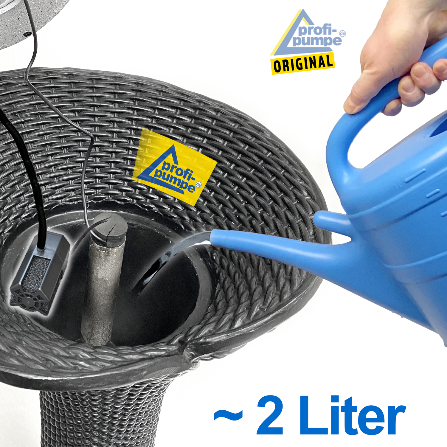 Nota: Frost kann zu Schäden am Gartenbrunnen und der Pumpe führen. Bei Frostgefahr muss der Gartenbrunnen und die Pumpe entleert werden, mit klarem Wasser gespült und trocken eingelagert werden. Dann haben Sie sehr lange Freude daran!