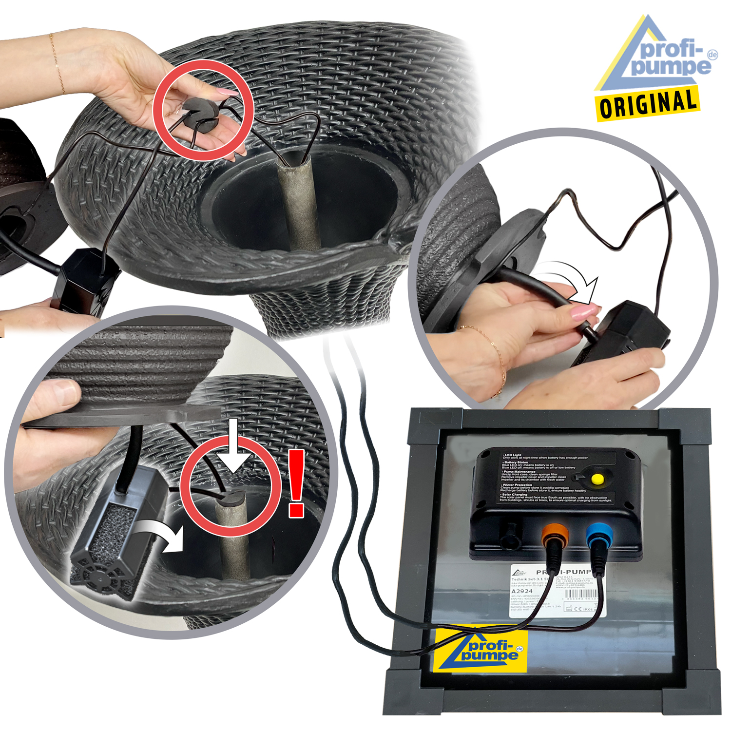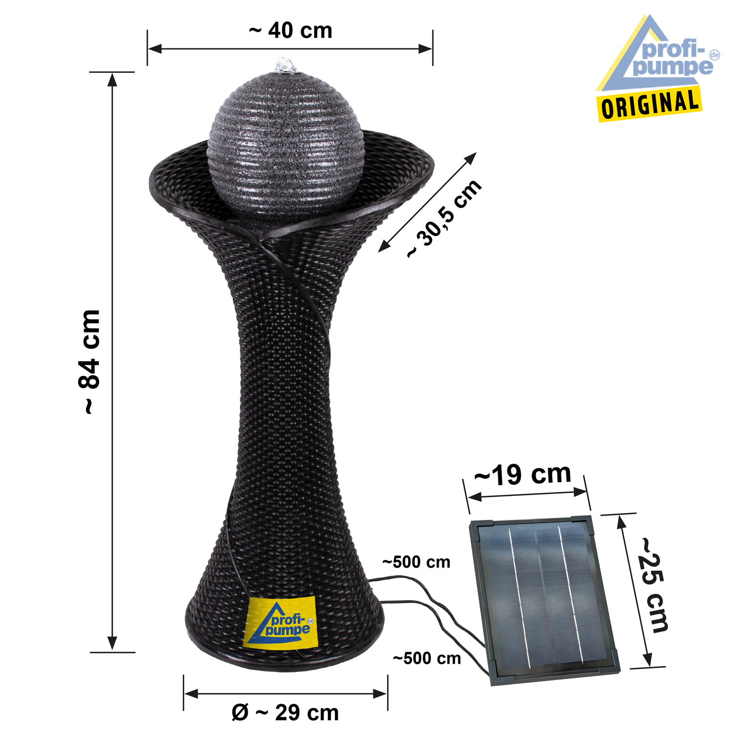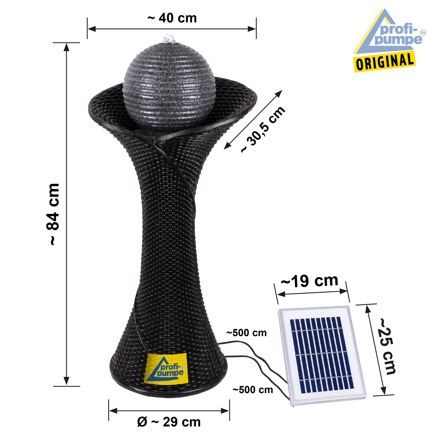 Solarbrunnen-Set in schwarzer RATTAN-Optik (Material: wetterbeständiger Kunststoff)