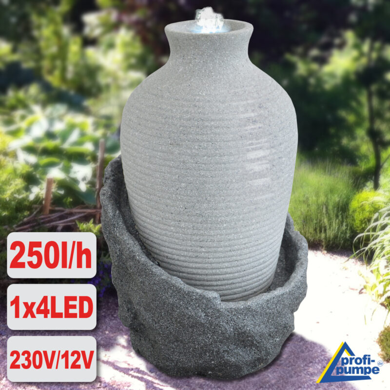 230V – Gartenbrunnen WASSER-SPIEL mit LED-Licht