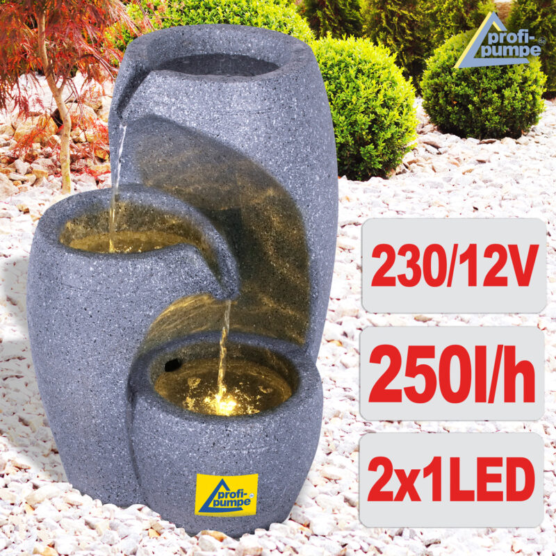 230V – Gartenbrunnen & Wasserspiel “GRANITSCHALEN-KASKADE-4” mit LED-Licht