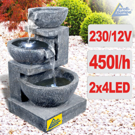 Gartenbrunnen "3-stufige STEIN-KASKADE" mit austauschbaren LED-Leuchten (2*1)