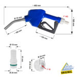 Diese automatische Zapfpistole, mit automatischer Abschaltung, ermöglicht eine einfache und sichere Adblue®-Entnahme und kann in PKWs, LKWs, Nutzfahrzeugen und Maschinen mit einer Förderleistung von bis zu 60 l/min verwendet werden.