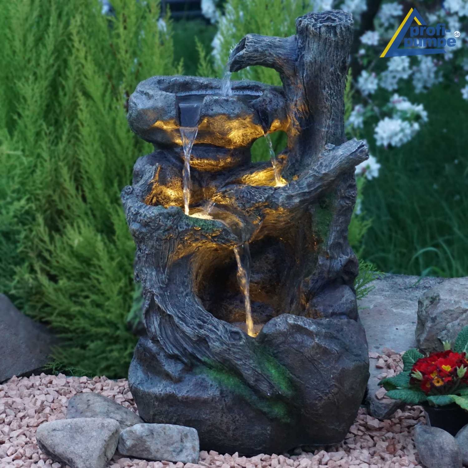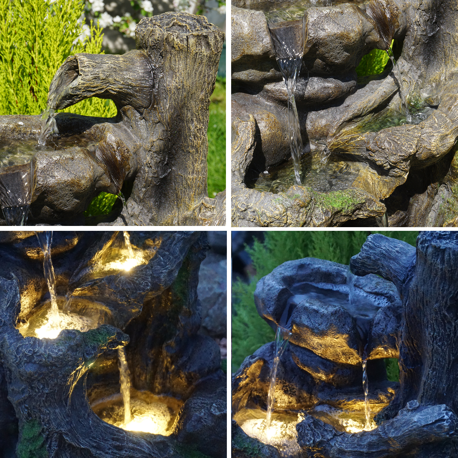B-Ware Gartenbrunnen BAUMWURZEL & STEIN-KASKADE mit LED-Licht
