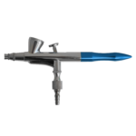 Die Airbrush-Pistole “Single-Action-Gun 207 D 0,3” ist ein Zweistoff-Zerstäuber, der nach dem Prinzip einer Strahlpumpe arbeitet, wobei Druckluft als Treibmittel verwendet wird. In Abhängigkeit von der Stärke des Luftstroms und der Menge der Farbe, kann man mit einer Airbushpistole feinste Linien aber auch große Flächen malen. Man kann Farbe deckend aufsprühen aber auch einen transparenten Farbfilm airbrushen.