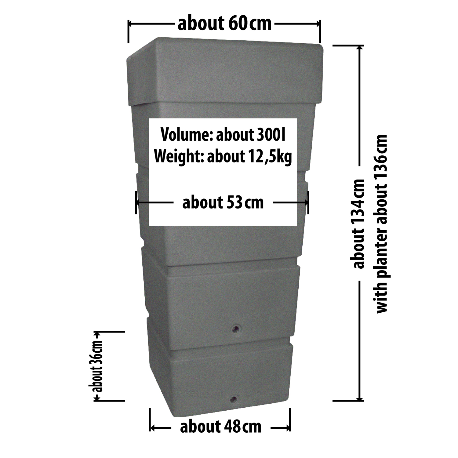 Zum Zubehör der Regentonne gehören ein passender Deckel sowie ein Auslaufhahn aus PE-Kunststoff in schwarz. Der Deckel der hochwertigen Regentonne ist mit einer integrierten Pflanzschale ausgestattet. Mit der intergrierten Pflanzschale können Sie die in zwei Farben erhältliche Regentonne individuell gestalten.Der Auslaufhahn für Regentonnen hat einen 3/4-Zoll-Anschluss. Er kann optimal an den dezent vorgeformten Stellen am Regenfass für den Wasser-Zu- und Ablauf angebracht werden.