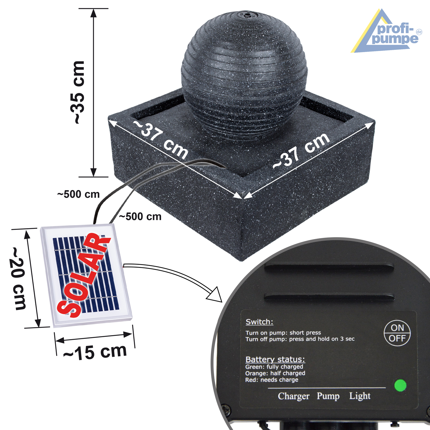 Solarbetriebener Garten-Brunnen mit Li-Ion Akku und LED-Licht