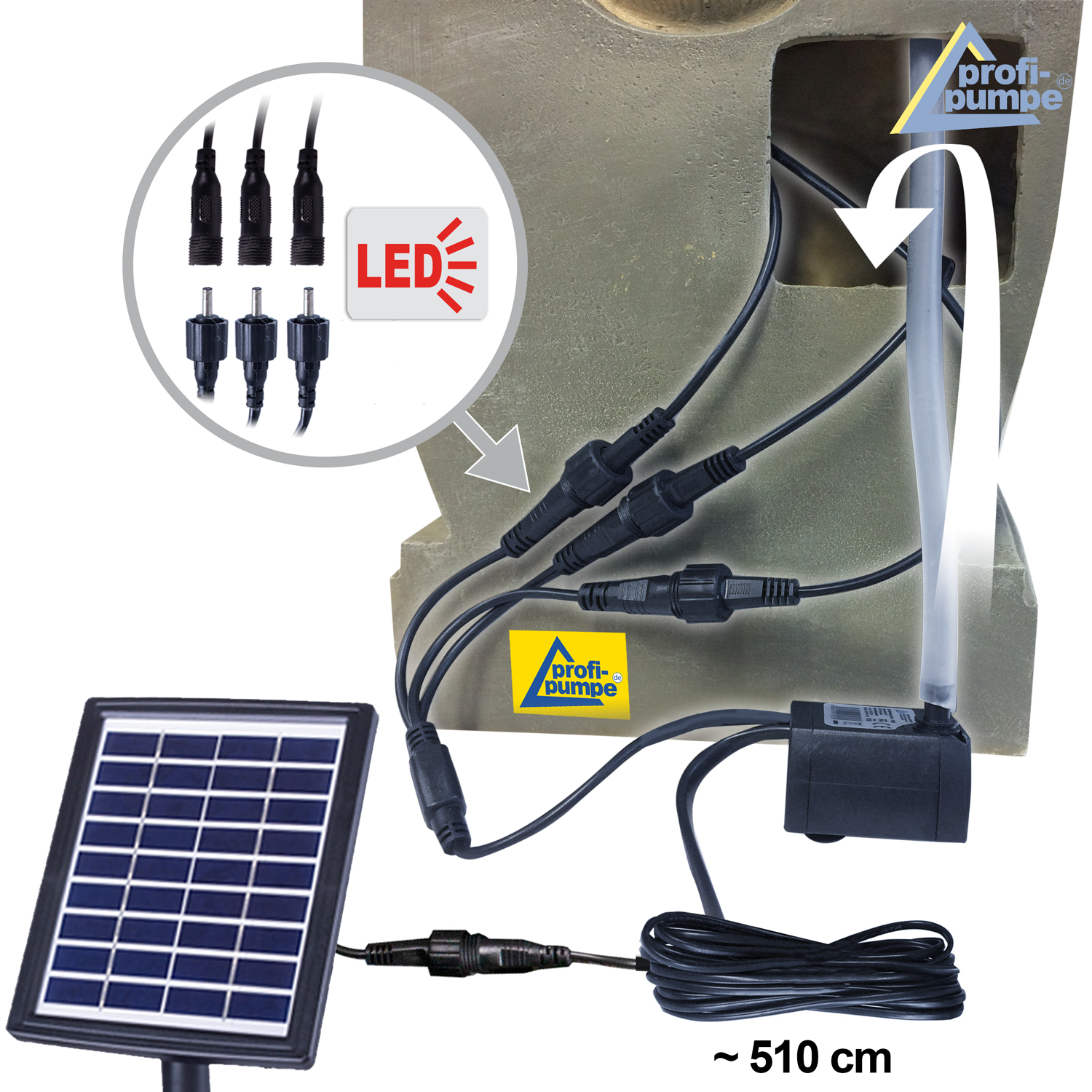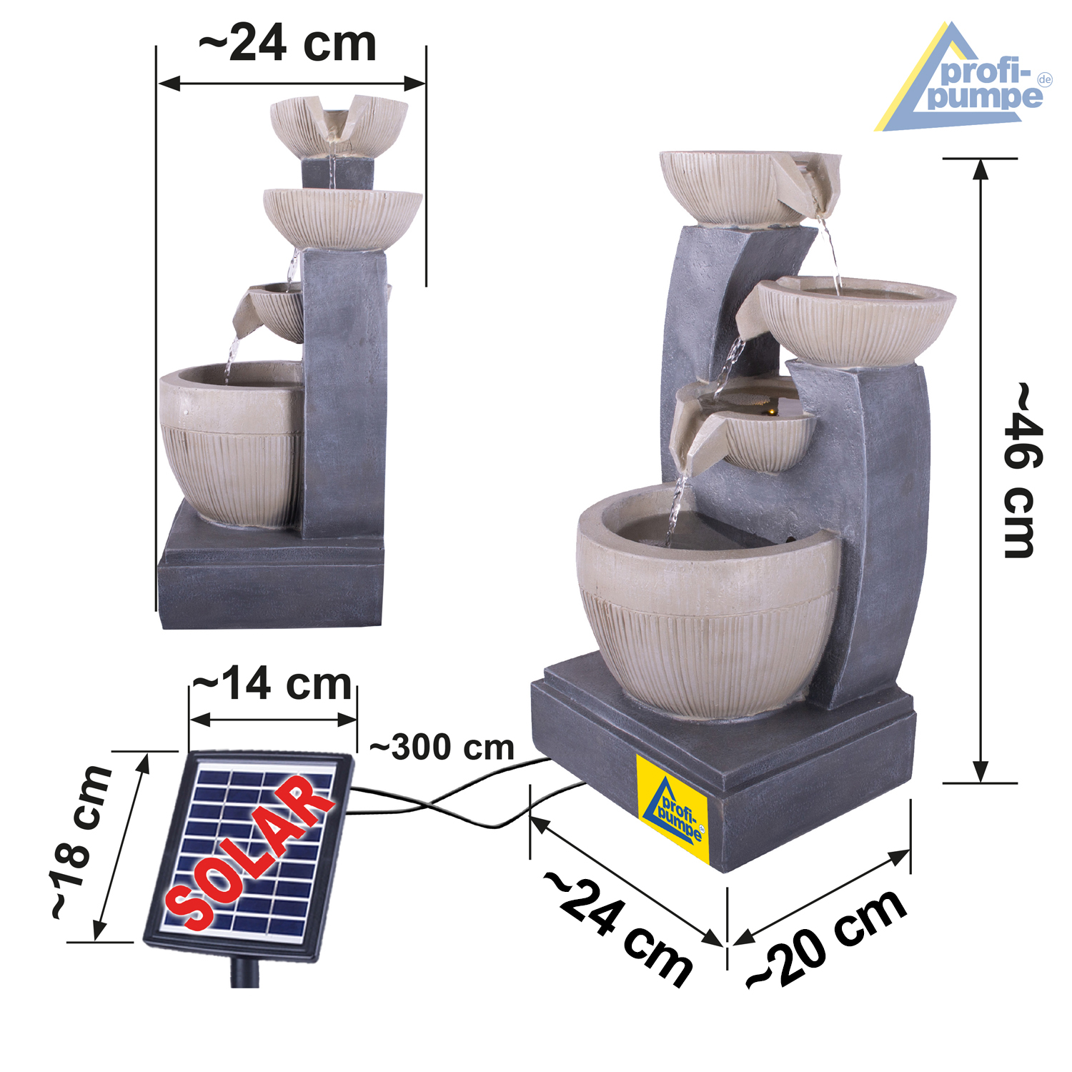 Solarbetriebener Garten-Brunnen mit Li-Ion Akku und LED-Lichter