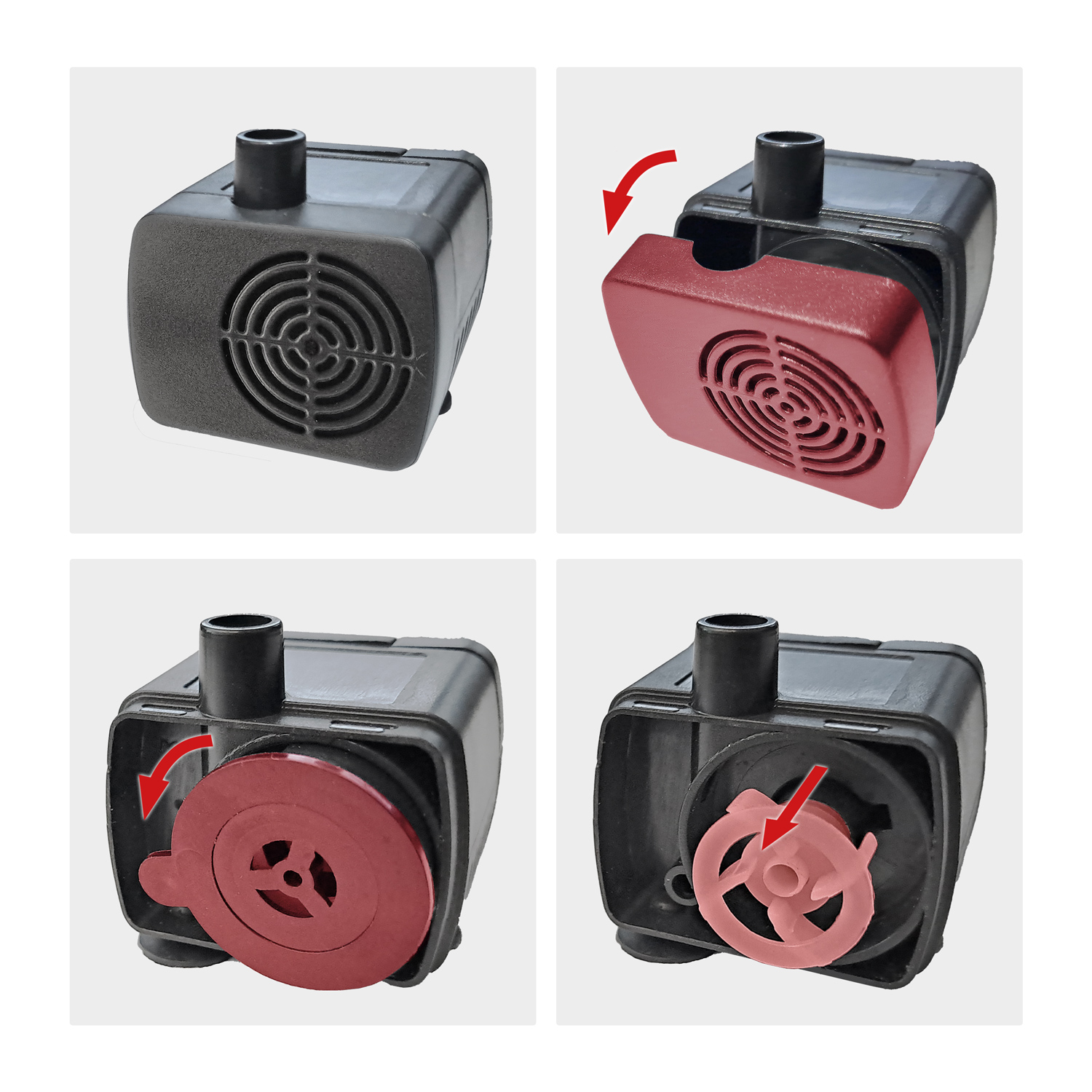 - Öffnen Sie, wie auf den Bildern und im Video beschrieben, die Pumpe.