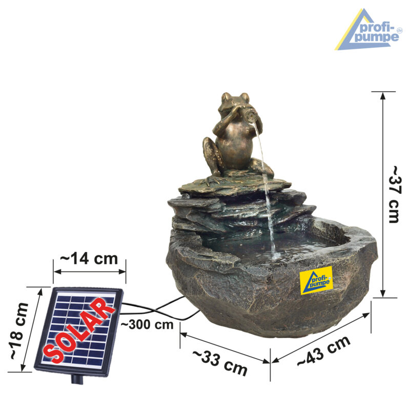 Solar – Gartenbrunnen & Wasserspiel “DURSTIGER FROSCH” mit Li-Ion-Akku