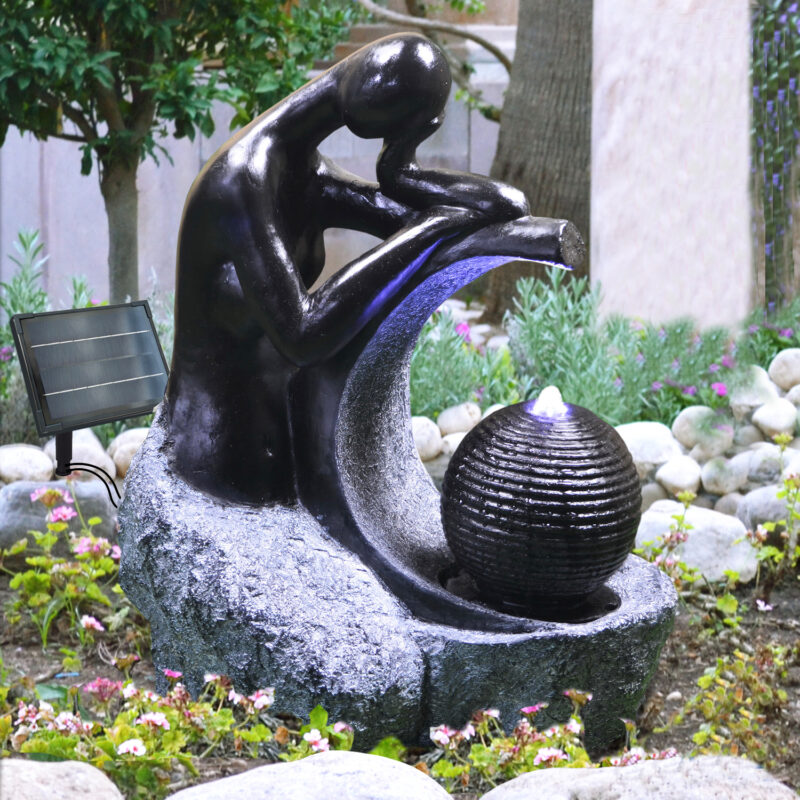 Solar – Brunnen “”LADY in BLACK-3″” mit Li-Ion-Akku und LED-Licht