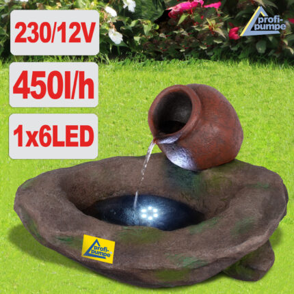 230V – Gartenbrunnen WEIN-AMPHORE mit LED-Licht