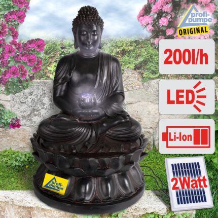 Solar Gartenbrunnen BUDDHA-ETERNITY mit LED-Licht und Li-Ion-Akku