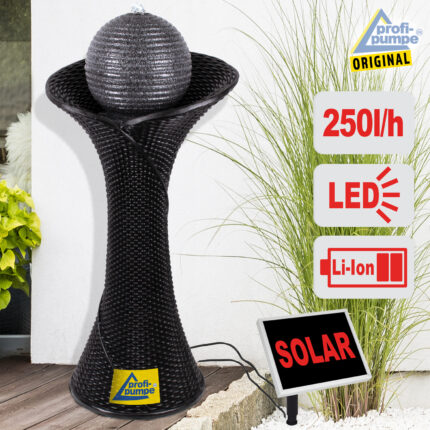 Solar – Brunnen “”RATTAN-3-2″” mit Li-Ion-Akku und LED-Licht