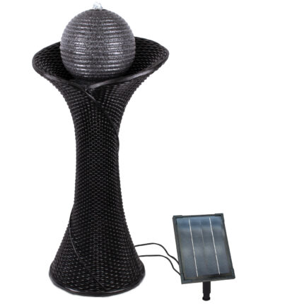Solarbrunnen-Set in schwarzer RATTAN-Optik (Material: wetterbeständiger Kunststoff)