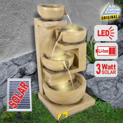 Solar – Gartenbrunnen RÖMER-KASKADE mit LED-Licht und Li-Ion-Akku