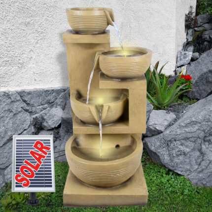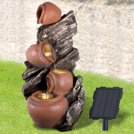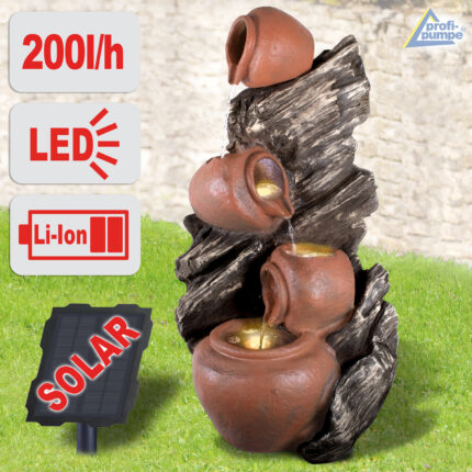 Solar – Gartenbrunnen & Wasserspiel “4-AMPHOREN” mit Li-Ion-Akku