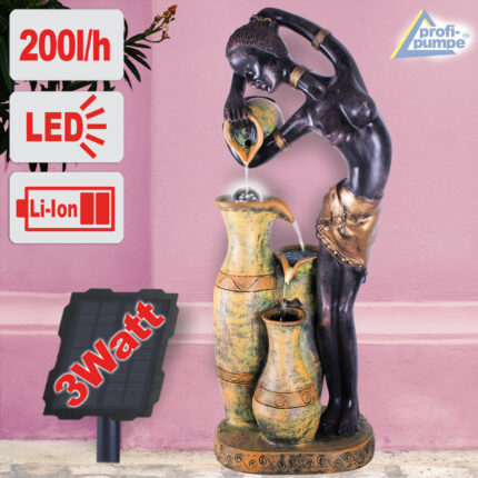 Solar – Gartenbrunnen & Wasserspiel “NAOMI” LED-Licht und Li-Ion-Akku