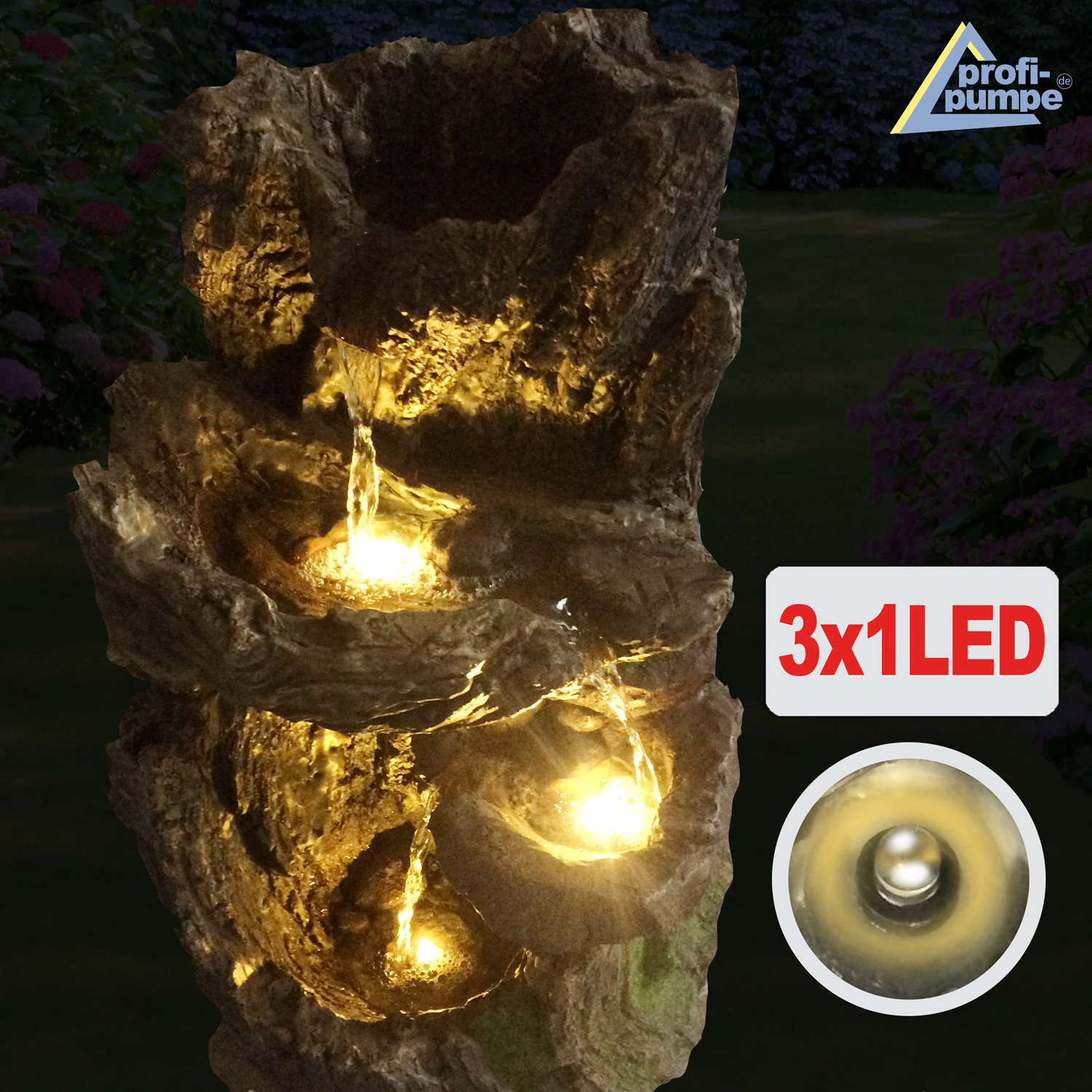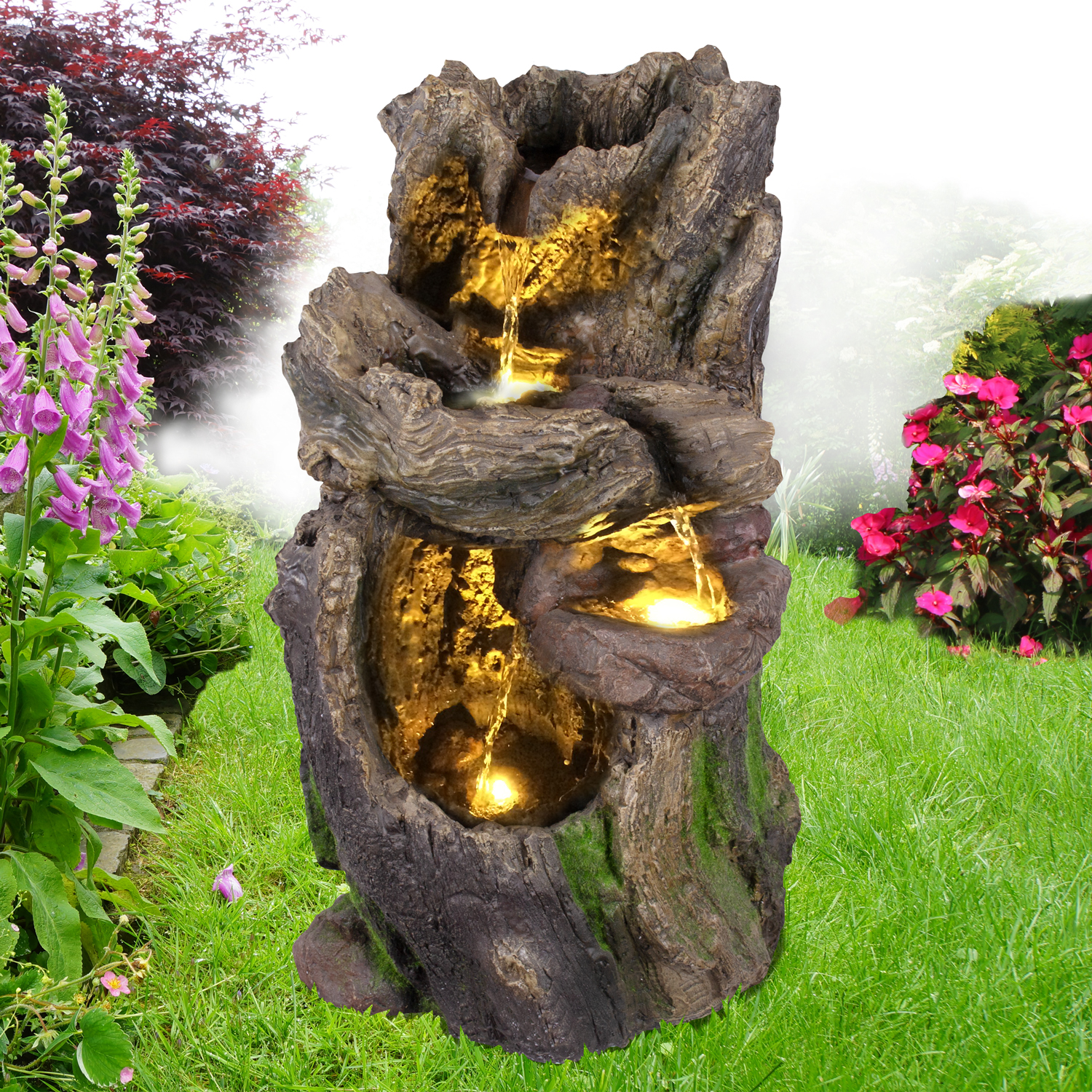 Gartenbrunnen “WALD-BÄCHLEIN” mit 3 austauschbaren LED-Lichtern (3*1)