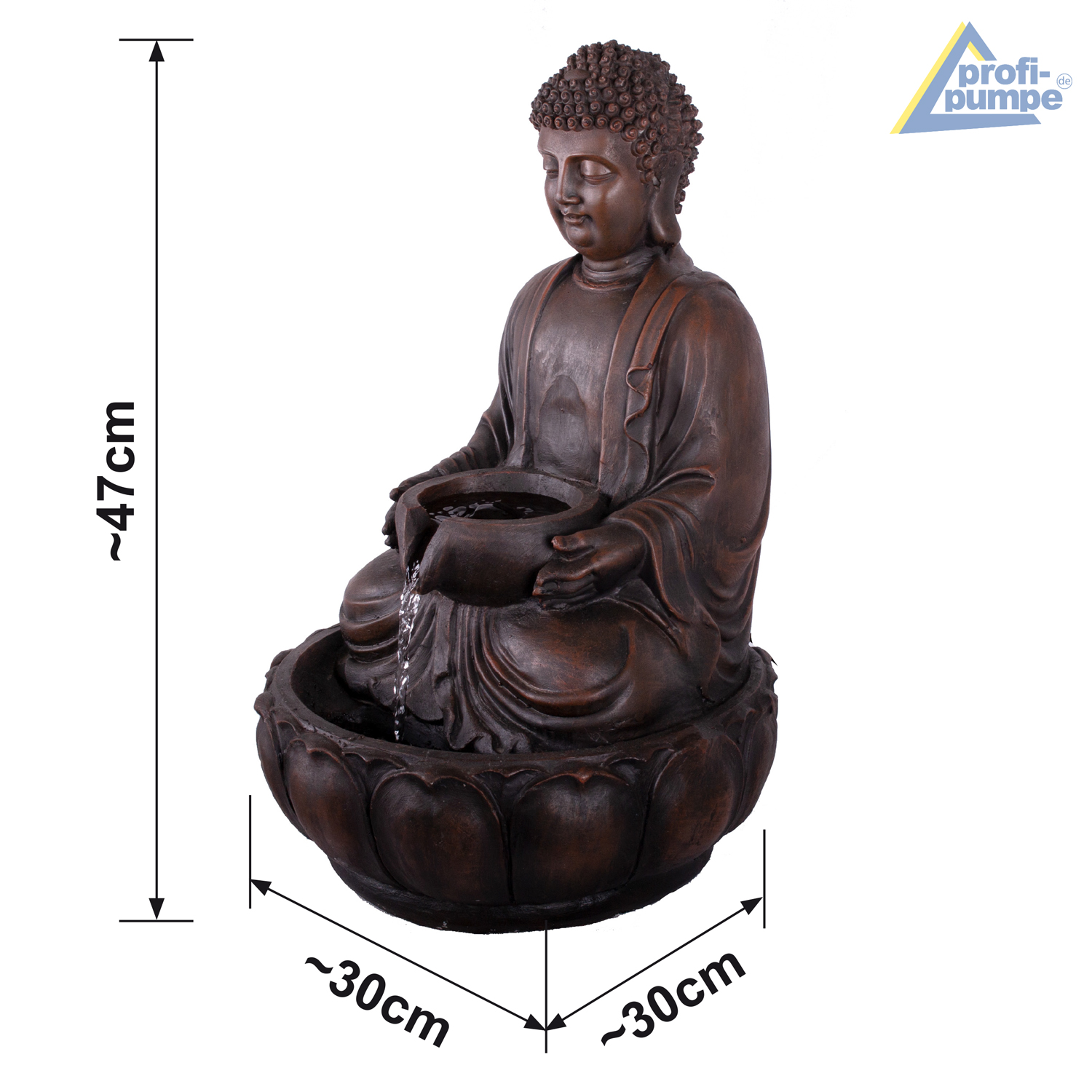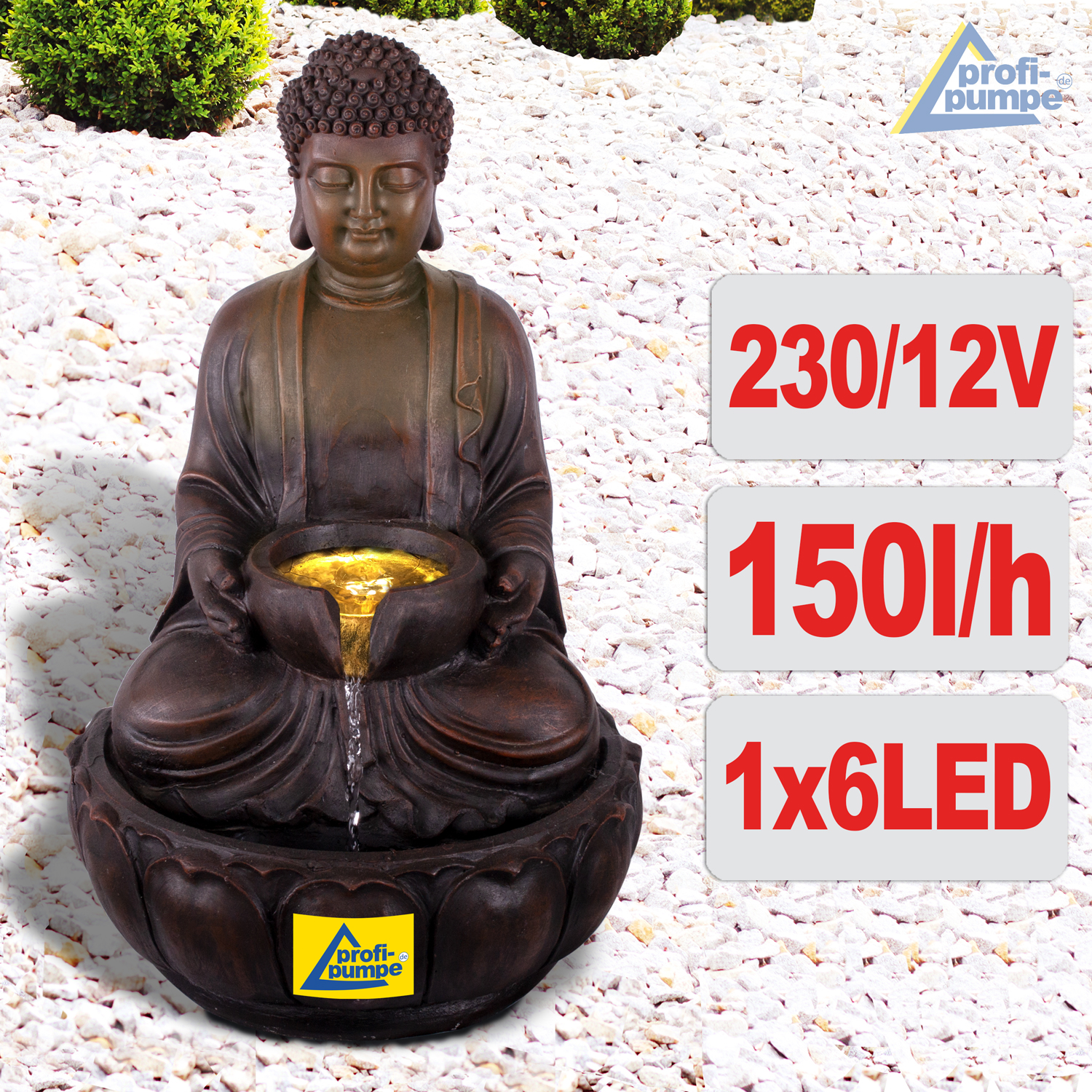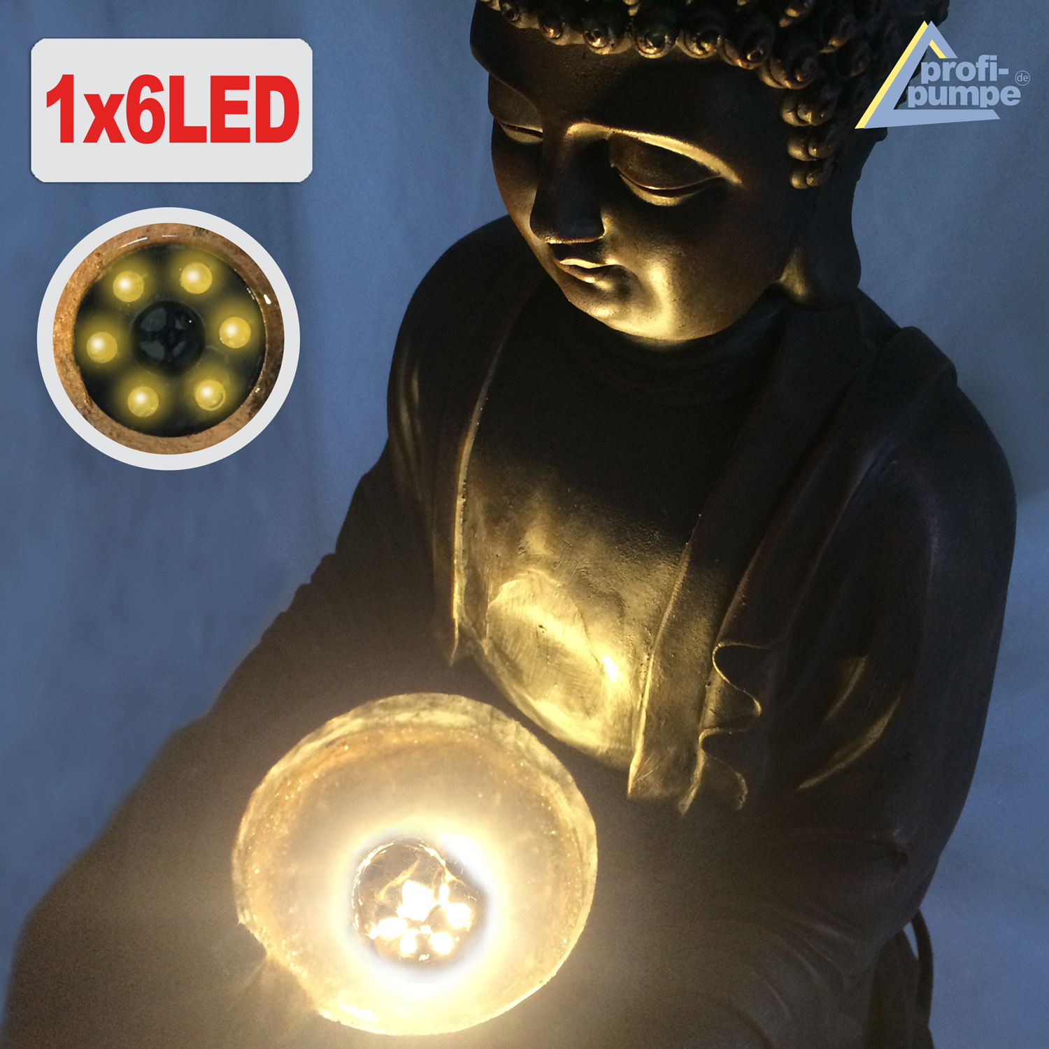 Gartenbrunnen ZHEN KRAFT-QUELLE mit LED-Ring (1*6 weiß) und 230/12V-Netzadapter. Für den Innen- und Außenbereich.