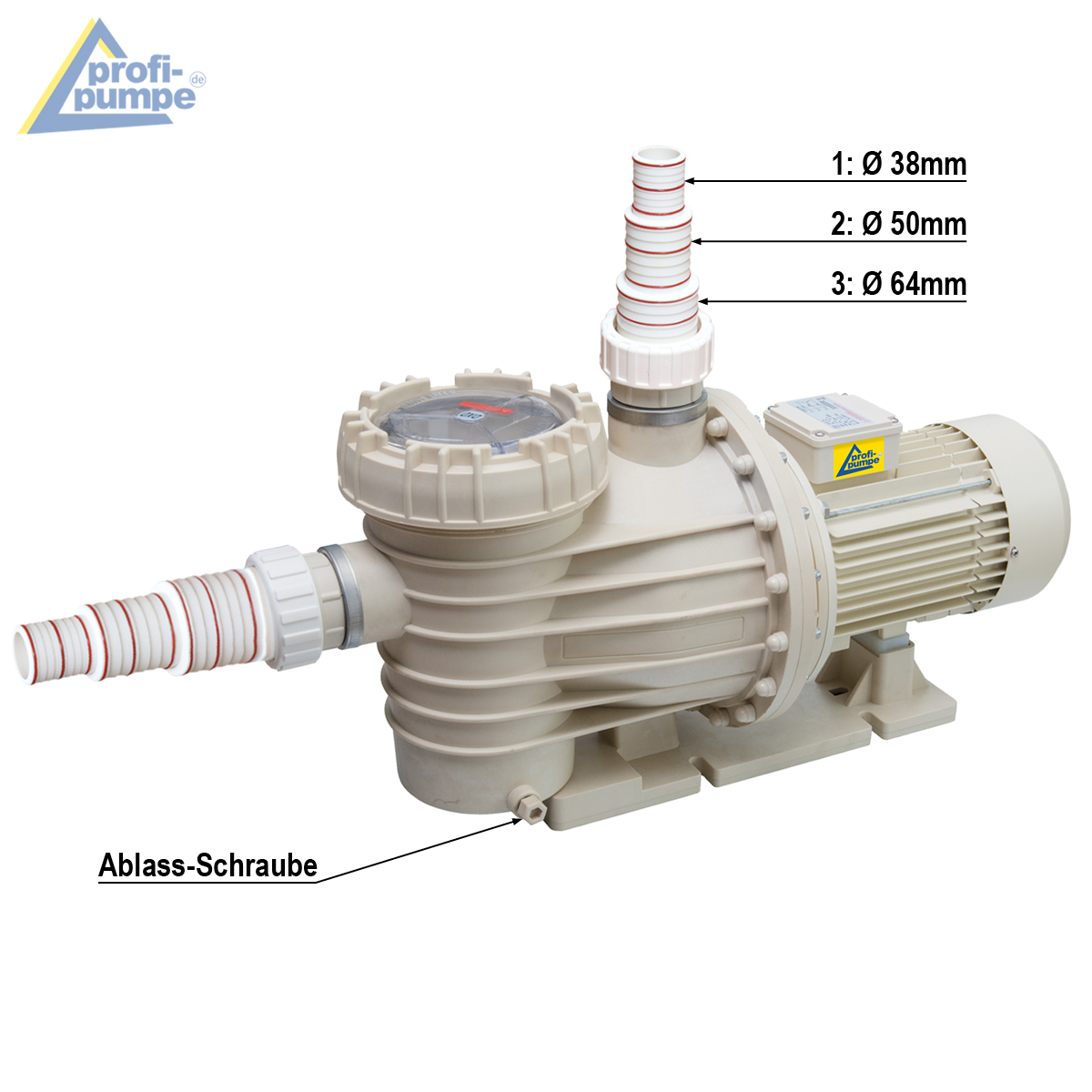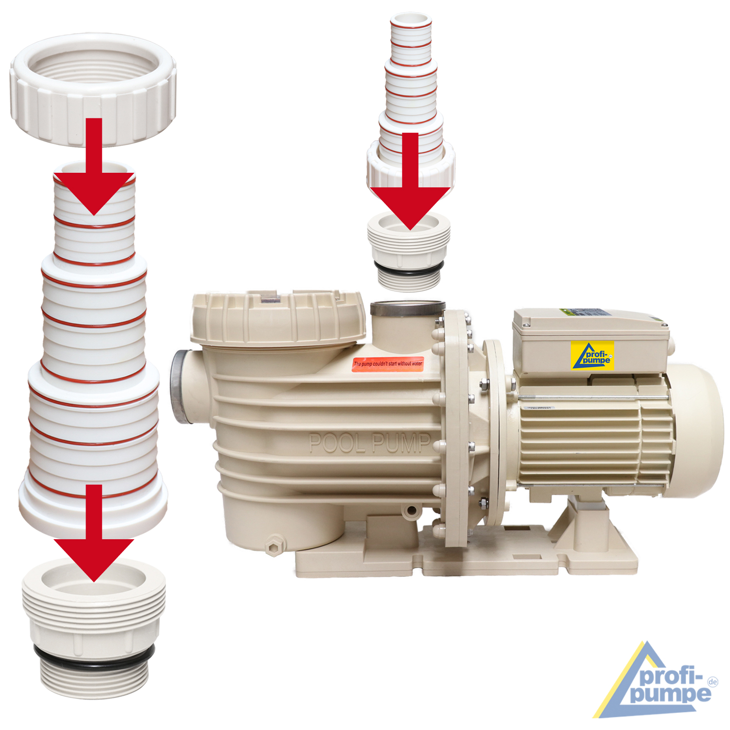 Die im Lieferumfang enthaltenen Stufenschlauchtüllen erlauben die Verwendung unserer POOL-STAR-Poolpumpen unter unterschiedlichsten Einbausituationen.