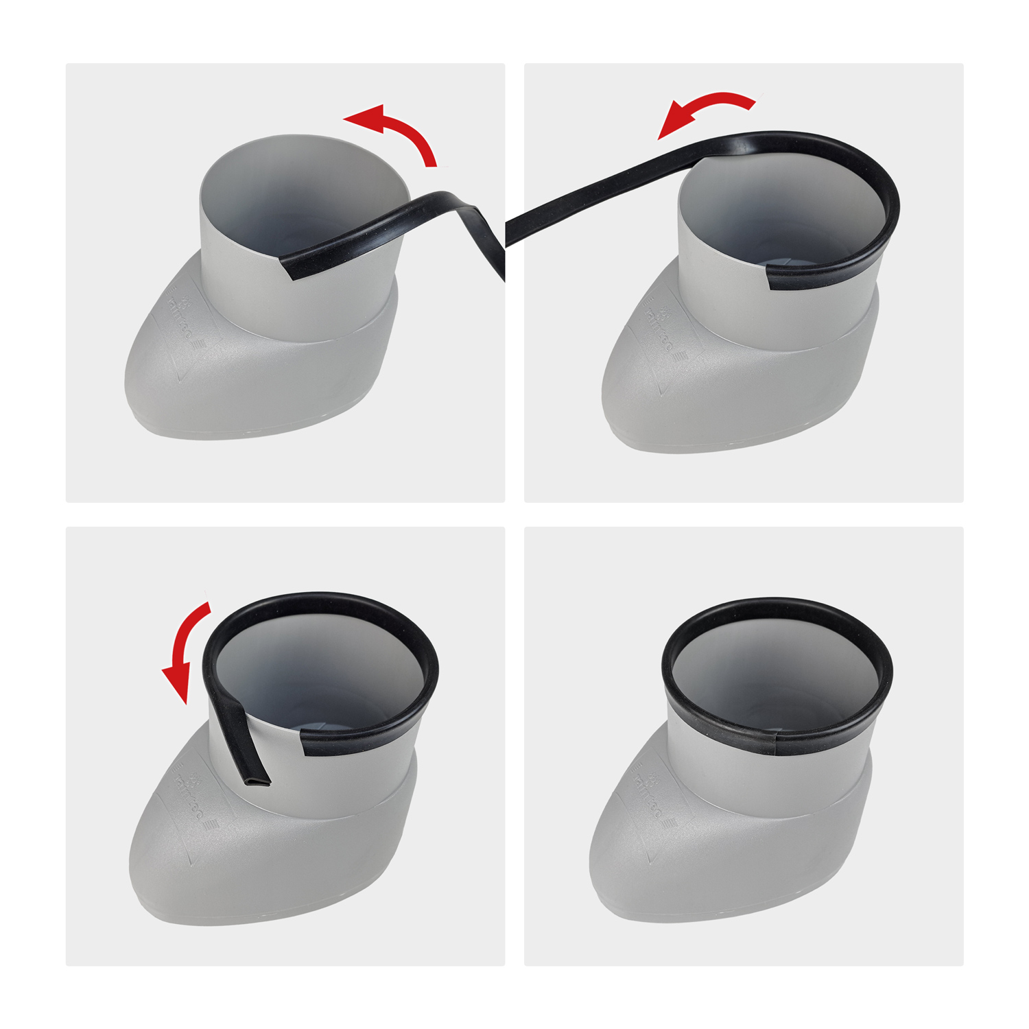 Kunststoff Fassungprofil EPDM (T33, T50, Z100) auf den Rand des Fallrohres montiert werden.