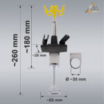 - 2 schwenkbare Doppelkrallen und 2 Kunststoffhülsen für verschiedene Pistolenarten
