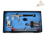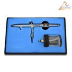 Sprühpistole mit großer Düse: 0,5mm / 22ml Farbbehälter / Double-Action-Trigger / Arbeitsdruck: 1 – 3,5bar / Aufbewahrungsbox