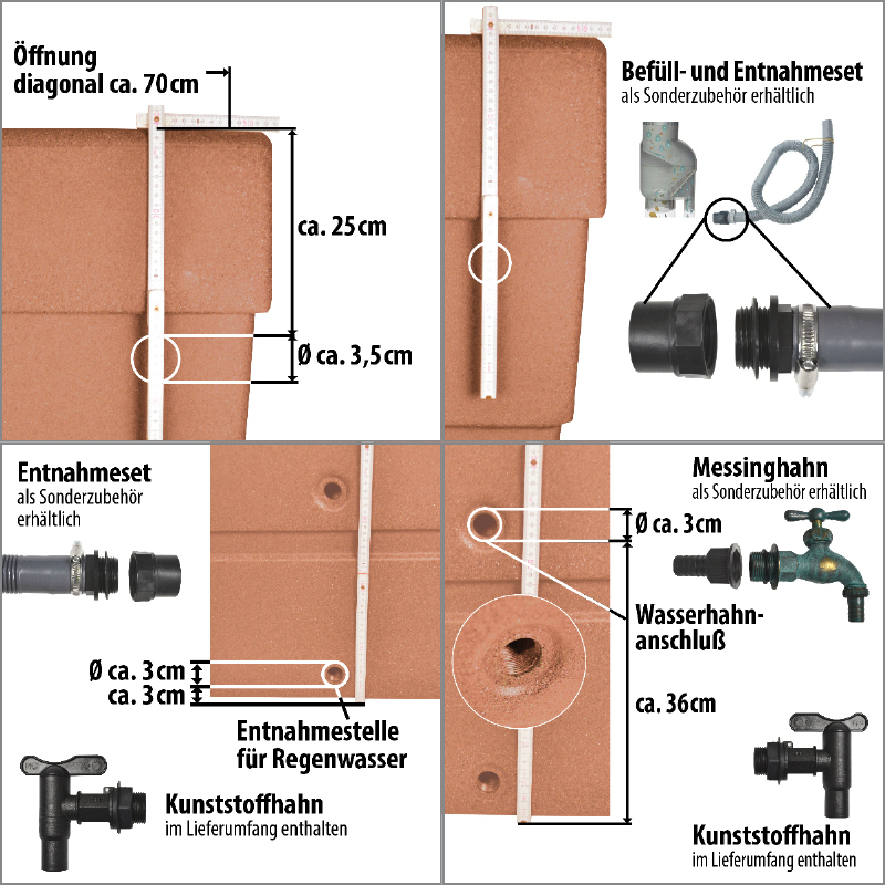 Regentonne Nizza 300l terrakotta zzgl. Befüll- und Entnahme-Set-Selezione
