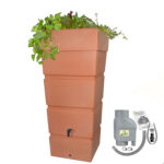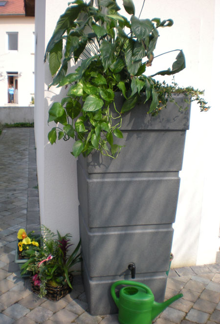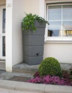Die Ecktonne “Nizza” ist eine Regentonne mit Doppelfunktion: Regenwasserspeicher und Pflanzschale!
