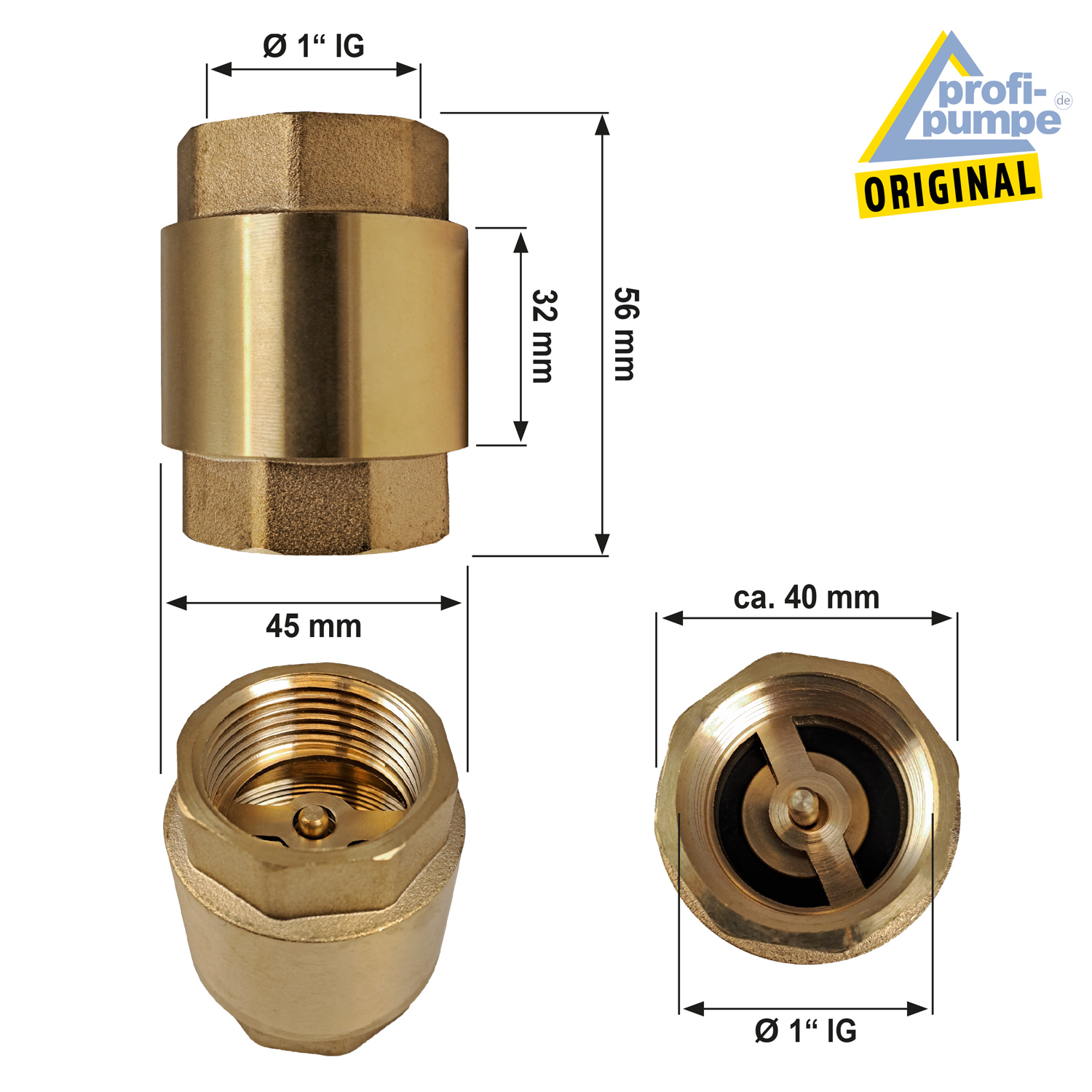 Rückschlagventil Messing 1″ Zoll IG auf 1″ Zoll IG