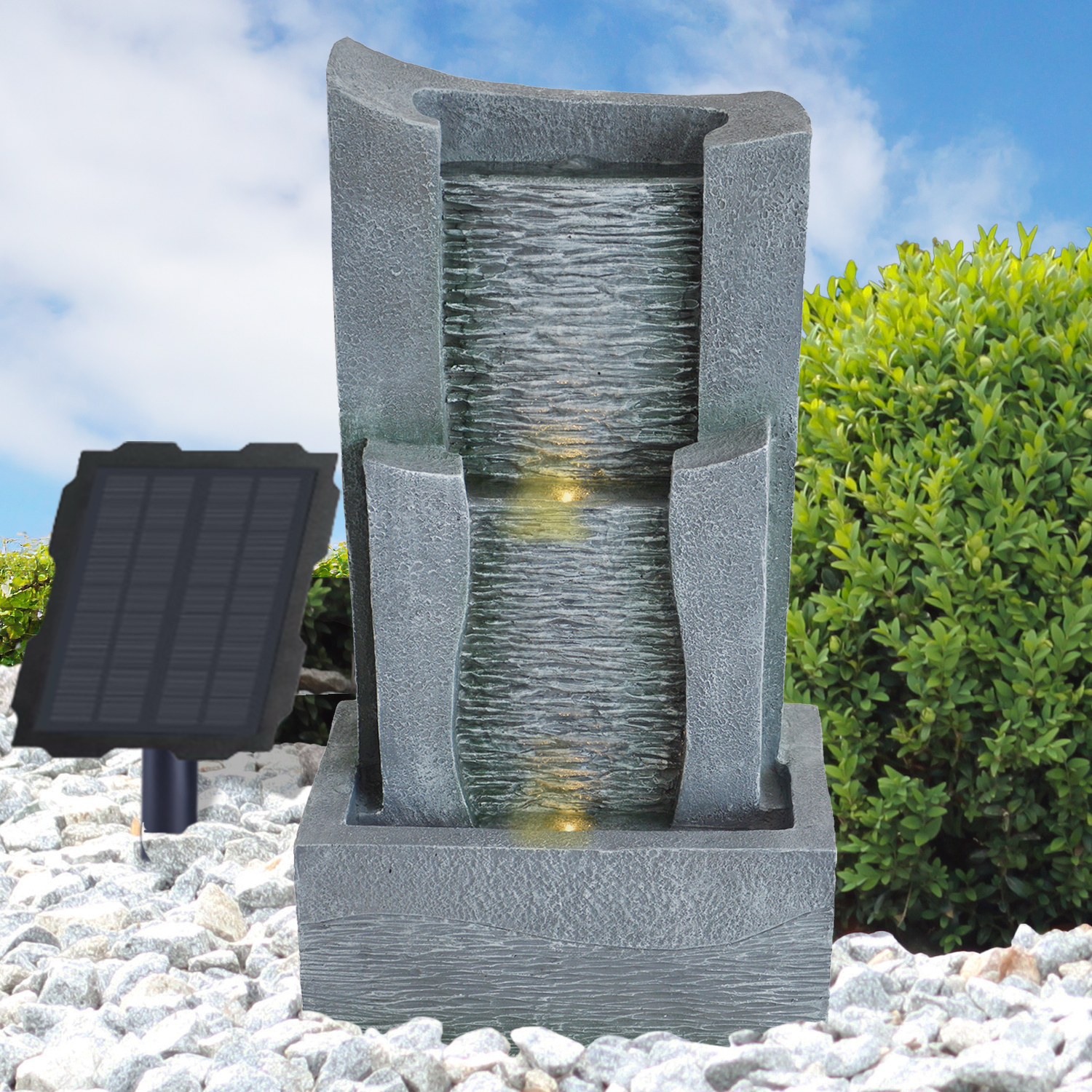 Solar – Gartenbrunnen & Wasserspiel “3-Stufige STEIN-KASKADE” mit Li-Ion-Akku