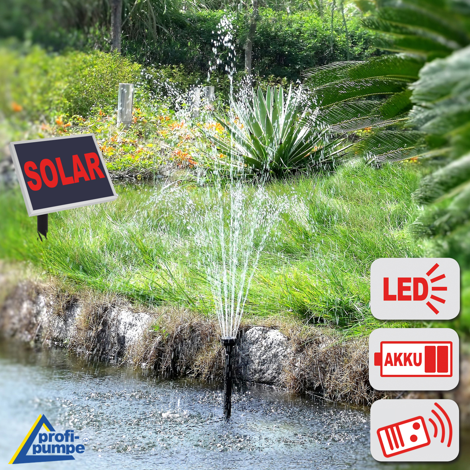 Der eingebaute Akku sammelt Sonnenstrahlen und speichert Energie. Der Betrieb ist somit auch ohne direkten Sonnenschein möglich. Um den Akku vor schädlicher Tiefentladung zu schützen schaltet sich die Pumpe automatisch jeweils nach 60 Minuten ab. Mittels Fernbedienung (oder mit Tastschalter direkt am Akku-Gehäuse) starten Sie die Teichpumpe neu. Die integrierte Lichtsensorik schaltet bei Dunkelheit automatisch die Fontänenbeleuchtung ein. Die Förderleistung der Pumpe können Sie entspannt vom Schaukelstuhl mittels Fernbedienung oder direkt am direkt am Akku-Gehäuse einstellen. Desweiteren können Sie über die Fernbedienung die Timer-Funktion betätigen und verschiedene Modi auswählen, wie Winter-Modus, Dauer-Modus.