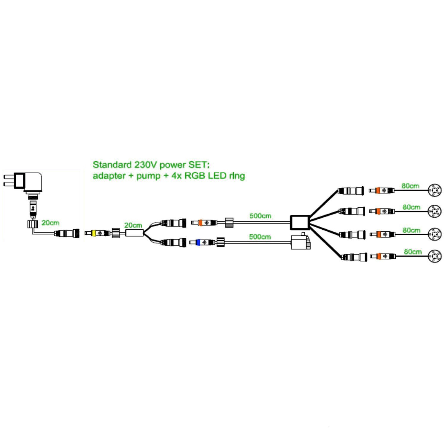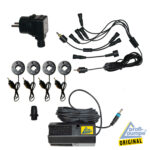 Teichpumpen-Set “OASIS 250-H”-Hybrid mit 230V-Anschluss, Solarbetrieb vorgesehen, 4Stck. 5-fach LED-RGB-Licht für Bachlauf QUELLBACH