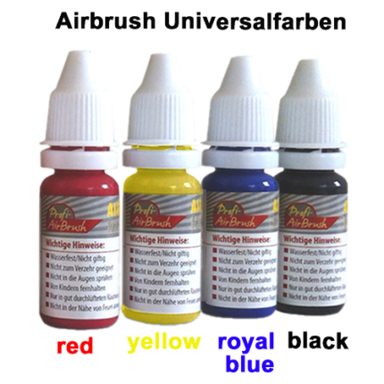 Airbrush-Universalfarben-Set für (fast) alle Anwendungen geeignet, auch für Körper-Tattoos nutzbar!