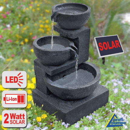 B-Ware Solar-Brunnen “GRANITSCHALEN-KASKADE-2” mit LiIon-Akku und LED-Licht