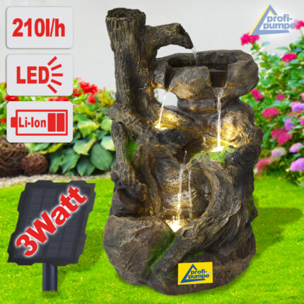 B-Ware Solar – Gartenbrunnen & Wasserspiel “BAUMWURZEL & STEIN-KASKADE” mit Li-Ion-Akku