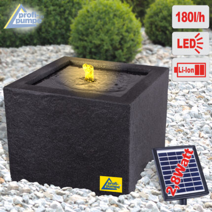 B-Ware Solar – Gartenbrunnen & Wasserspiel “BASALT-MODERNA” mit Li-Ion-Akku