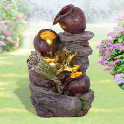 Gartenbrunnen "STEINKRUG" mit 3 austauschbaren LED-Lichtern (3*1)