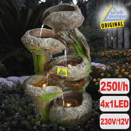 B-Ware 230V – Gartenbrunnen FELS-SCHALEN mit LED-Licht