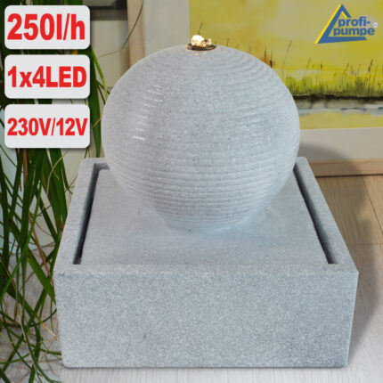 Gartenbrunnen "TRIO-BASALT-2 grau" mit LED-Ring (3x4 LED) und 230/12V-Netzadapter. Für den Innen- und Außenbereich.