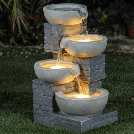 B-Ware Gartenbrunnen & Wasserspiel “GRANITSCHALEN-KASKADE-4” mit LED-Licht