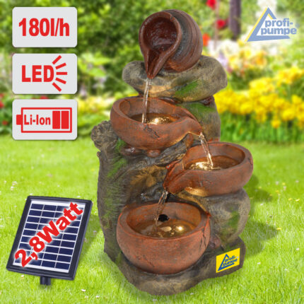 B-Ware Solar – Brunnen “KLASSIK-GARTEN-2-1” mit LiIon-Akku & LED-Licht(Neu)