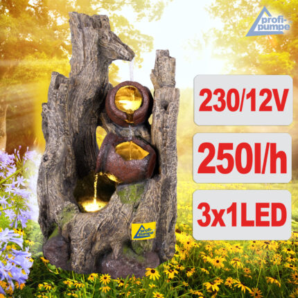 230V – Gartenbrunnen WALD-ZAUBER mit LED-Licht