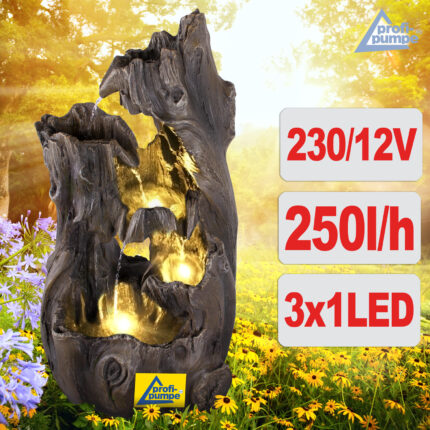 Gartenbrunnen WALD-ZAUBER mit LED-Ring (3x1 warm weiß) und 230/12V-Netzadapter. Für den Innen- und Außenbereich.